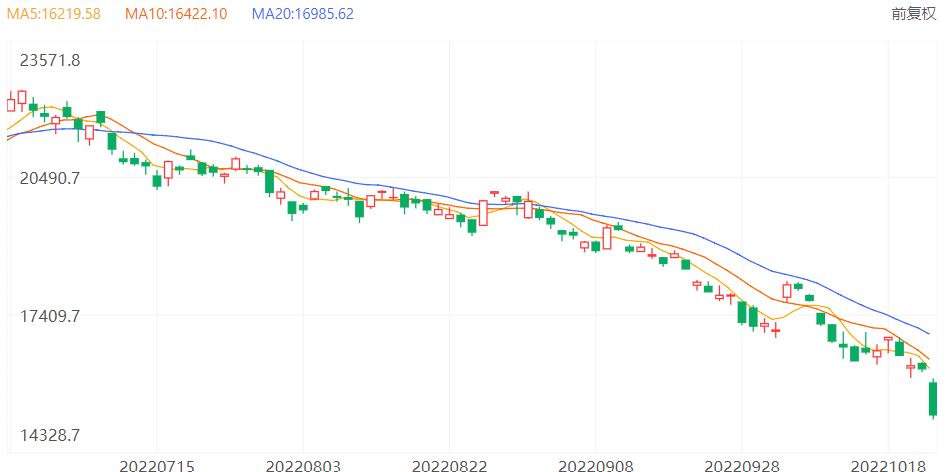 大盘放量重挫,几大重磅互联网蓝筹跌超11%。恒指最低回撤至15000关口附近,指数创09年4月30日以来新低;恒国指最低跌至5075点,刷新08年10月29日至今低点纪录;恒科指一度大跌10.7%,再创新低。早盘,股指大幅低开后短暂反弹,随后迎来单边下跌行情。午后,股指继续下探,尾盘时段触及日低。截至收盘,恒生指数跌6.36%或1030.43点,报15180.69点,全日成交额1617.53亿港元;恒生国企指数跌7.30%,报5114.48点;恒生科技指数跌9.65%,报2801.99点。