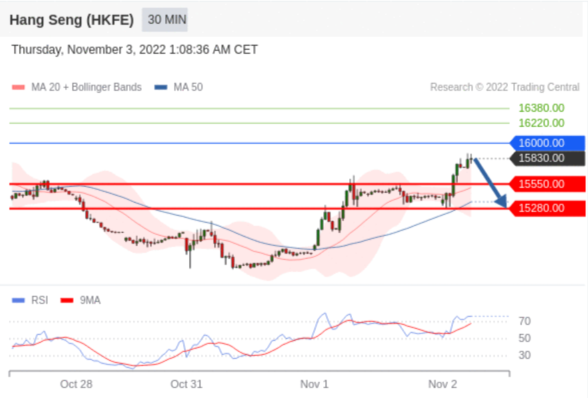 交易策略: 在 16000.00 之下,看跌,目标价位为 15550.00 ,然后为 15280.00 。