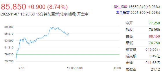 今日走势分析:舜宇光学科技(02382.HK)截至09:47上涨6.21%,现报83.85港元,涨4.9港元。成交126万股,涉资1.03亿元。