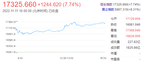 港股全天呈现暴涨行情,恒生科技指数“涨停”(10.05%),上涨超300点,恒指涨7.74%上扬超1200点,国指涨8.31%,三者皆创反弹新高。港股后市展望:天风证券表示,互联网中期估值性价比高,建议乐观看待长期价值回归。历经前期大幅波动后,当前市场环境对于潜在催化剂的反应相对敏感。外部环境整体呈现改善态势,中国科技互联网企业估值处于历史相对低位,基本面修复趋势较明确,中期估值性价比较高。短期重点关注影响企业收入加速拐点的宏观前置指标、以及市场流动性/风险偏好的影响因素。