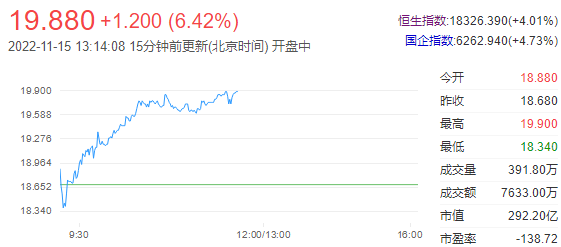 今日走势分析:众安在线(06060)涨超5%。公司昨日发公告称,于2022年1月-10月,公司所获得的原保险保费收入总额约为人民币197.53亿元,同比增15.93%。截至发稿,涨5.67%,报19.74港元,成交额4461.72万港元。
