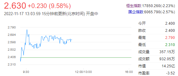 日前,公司成功引进青光眼医疗产品TONO-i,成为其大中华区独家分销商。同时,旗下引入的白内障术后用药NTC010正式申请国内上市。截至2022年11月16日收盘,兆科眼科-B(06622.HK)报收于2.4元,上涨12.68%,换手率0.31%,成交量166.2万股,成交额383.42万元。投行对该股关注度不高,90天内无投行对其给出评级。截至2022年11月16日收盘,兆科眼科-B(06622.HK)报收于2.4元,上涨12.68%,换手率0.31%,成交量166.2万股,成交额383.42万元。投行对该股关注度不高,90天内无投行对其给出评级。