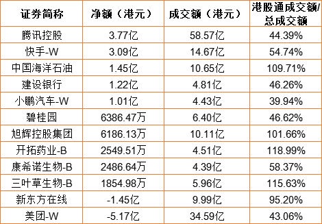 亚汇网11月18日港股通数据统计显示:腾讯控股净买入额居首,达3.77亿港元,美团-W净卖出额居第一位。(亚汇网编辑:陌尘)