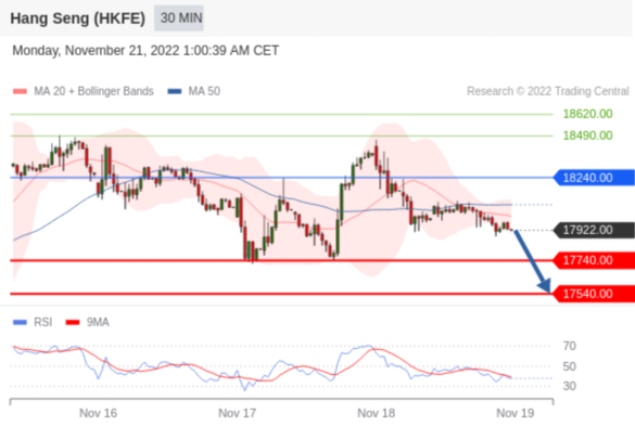 交易策略: 在 18240.00 之下,看跌,目标价位为 17740.00 ,然后为 17540.00 。