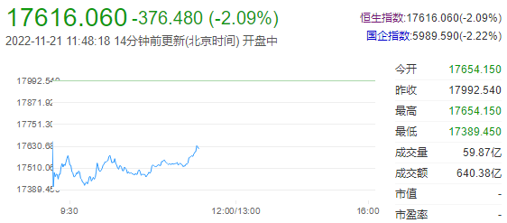 盘面上,权重科技股集体下跌,哔哩哔哩跌7%、京东跌5%,美团、阿里巴巴跌4%。市场持续关注疫情,餐饮股集体下跌,海底捞跌逾9%,为表现最差蓝筹;澳门大赛车期间客量逊预期,**股普跌,新濠国际发展跌8%; iPhone14Pro发货再次延期, 苹果概念股集体下挫,舜宇光学跌近5%领跌;卡塔尔将在世界杯场馆内禁售酒类,啤酒股大跌,百威亚太跌6%;香港零售股、教育股、奢侈品股、烟草股、黄金股、体育用品股等多股下跌。另外,电力股、半导体股、港口运输股等少数股走强。