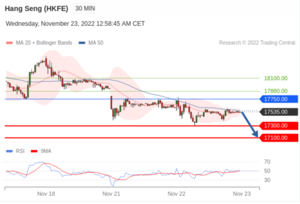 交易策略: 在 17750.00 之下,看跌,目标价位为 17300.00 ,然后为 17100.00 。