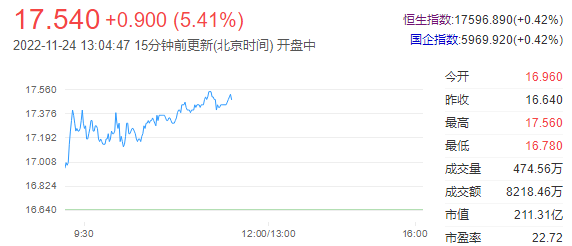 今日走势分析:瑞声科技(02018)早盘涨近5%,截至发稿,涨4.57%,报17.4港元,成交额7048.38万港元。