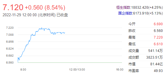 今日走势分析:电影概念股早盘普涨,截至发稿,猫眼娱乐(01896)涨9.76%,报7.2港元;IMAX中国(01970)涨6.02%,报5.46港元;阿里影业(01060)涨5%,报0.42港元;稻草熊娱乐(02125)涨4.55%,报0.69港元。
