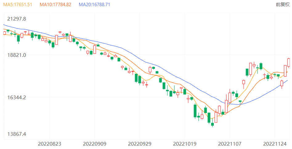 港股上午升40点收市。午后初段曾再扩大升幅,但近高位稍见沽压,再回落小跌。唯买盘强劲,并反弹倒升,更向上扩大升幅至高见18631,最多升427点。续在高位附近横行至收市。恒指在周一曾跌穿17000关口,创近两个星期低位16833。但当日收市已重上17297。周二大幅造好,并以最高位18204收市。是日早上曾回落倒跌,低见18052,但已见有买盘支持。午后再高见18631。以上皆反映出有强劲的买盘支持,投资者对踏入年内最后一个月亦充满信心。11月份累升近两成半,如12月再维持升势,定可冲上20000关口。