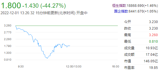 今日走势分析:海昌海洋公园(02255)早盘股价闪崩,盘中跌超56%回吐全年涨幅,较年内最高价4.285已跌近67%。截至发稿,跌56.04%,报1.42港元,成交额5.11亿港元。
