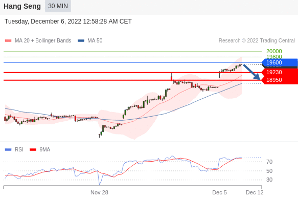 交易策略: 在 19600 之下,看跌,目标价位为 19230 ,然后为 18950 。