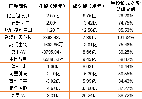 亚汇网12月6日港股通数据统计显示:比亚迪(002594)股份净买入额居首,达2.55亿港元,美团-W净卖出额居第一位。(亚汇网编辑:陌尘)