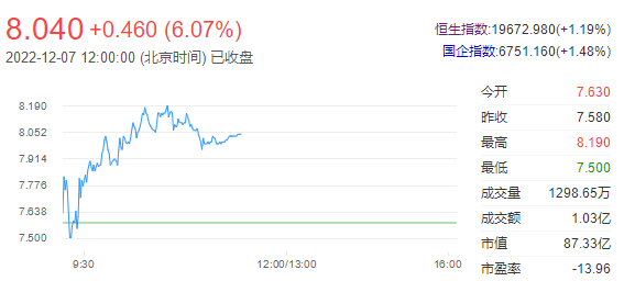今日走势分析:餐饮股早盘继续走高,截至发稿,呷哺呷哺(8.04 0.46 6.07%)(00520)涨7.52%,报8.15港元;海底捞(22.95 1.20 5.52%)(06862)涨5.29%,报22.9港元;谭仔国际(2 0.06 3.09%)(02217)涨3.09%,报2港元;百胜中国(454 14.80 3.37%)(09987)涨3.01%,报452.4港元。