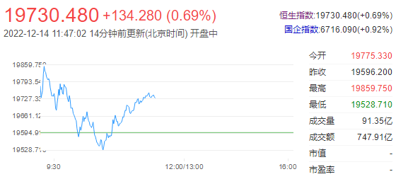 港股上午盘三大指数开盘冲高后明显回落,盘中曾全部转跌。恒生科技指数午间小幅上涨0.06%,恒指、国指分别涨0.69%和0.92%。