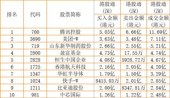 亚汇网实时数据统计:截至12月15日收盘,腾讯控股、山东新华制药股份、美团-W位居港股通(沪)成交前三,腾讯控股、美团-W、山东新华制药股份位居股通(深)成交前三。