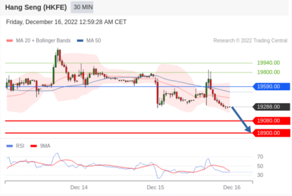 交易策略: 在 19590.00 之下,看跌,目标价位为 19080.00 ,然后为 18900.00 。