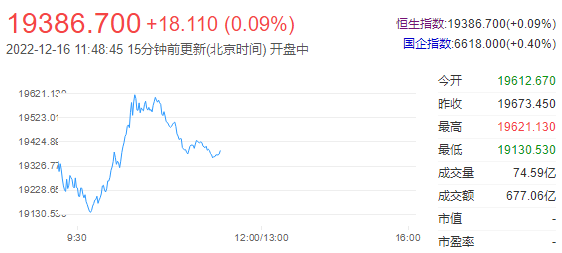 市场再炒通关预期,港股早盘三大指数曾快速拉升转涨,但临近午盘明显回落,恒指小幅上涨0.09%,国指涨0.4%,恒生科技指数涨0.15%,盘中一度涨近2%。