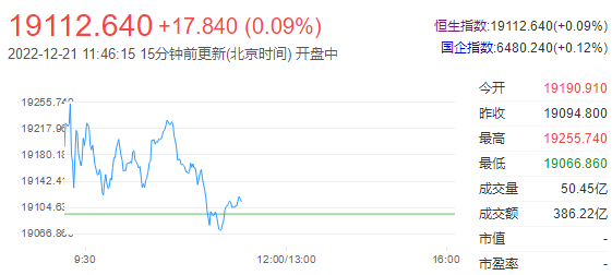 港股三大指数午间集体收涨,恒指涨0.09%,国指涨0.12%,恒生科技指数涨0.28%。南下资金半日净流入12.63亿港元,大市成交额为386亿港元。