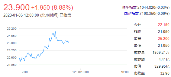 今日走势分析:泡泡玛特(09992)早盘继续回暖,升约10%,创5个月来高点。自去年2月开启回购至今,泡泡玛特累计回购近3000万股,占比约2.14%。机构强调,预计公司疫后周期向上弹性较大,23年或迎经营拐点。截至发稿,泡泡玛特涨10.02%,报24.10港元,成交额2.64亿港元。
