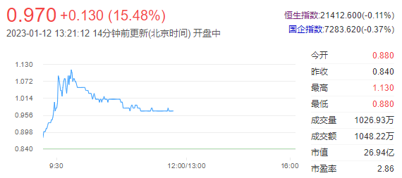 今日走势分析:高阳科技(00818)早盘放量拉升,一度涨超30%,盘中高见1.13港元创2021年10月份以来新高。截至发稿,涨21.43%,报1.02港元,成交额781.37万港元。