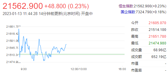港股上午盘三大指数窄幅震荡,恒指涨0.23%,国指涨0.1%,恒生科技指数微跌0.04%。