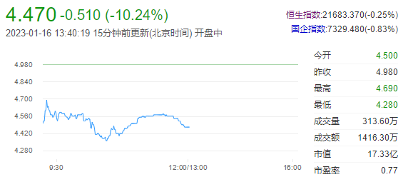 今日走势分析:柏能集团(01263)发布盈警,早盘一度跌超14%,截至发稿,跌11.65%,报4.4港元,成交额1113.21万港元。