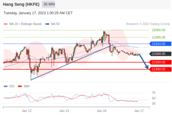 交易策略: 在 21810.00 之下,看跌,目标价位为 21550.00 ,然后为 21450.00 。