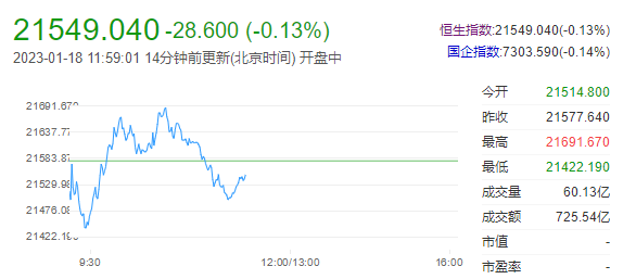 截至午间收盘,恒生指数(21544 -33.64 -0.16%)跌0.13%,报21549.04点;国企指数跌0.14%,红筹指数跌0.02%。恒生科技指数(4493.03 -7.51 -0.17%)跌0.17%,百度跌4.47%,京东跌3.67%,哔哩哔哩跌1.79%。