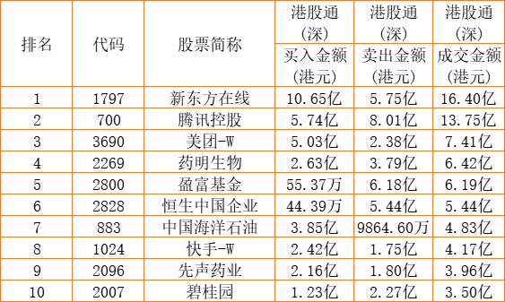 亚汇网实时数据统计:截至1月18日收盘,新东方在线、腾讯控股、美团-W、盈富基金位居港股通(沪)成交前三,新东方在线、腾讯控股、美团-W位居股通(深)成交前三。