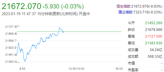 港股早盘震荡走低,恒指跌0.03%,恒生科技指数跌1.13%,节假日概念股、CXO概念股低开高走,回港中概股、手游板块持续走低;乐华娱乐早盘涨超40%,报5.73港元每股。