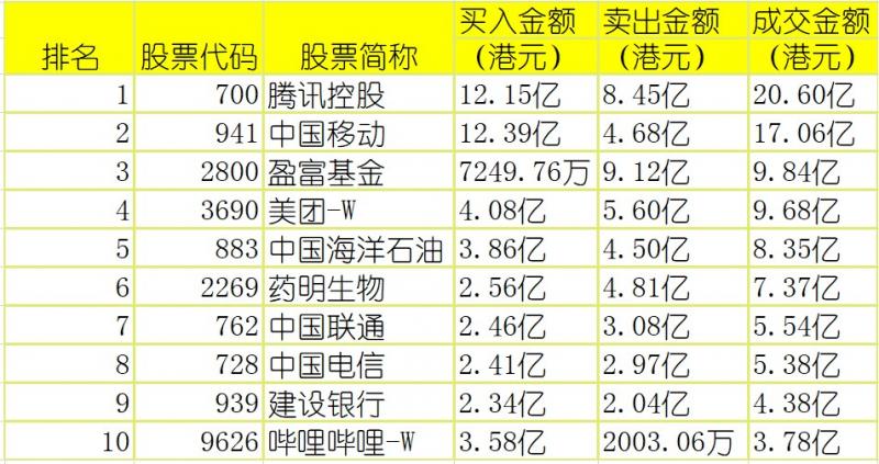 亚汇网实时数据统计:截至3月13日收盘,腾讯控股、中国移动、盈富基金(沪)成交前三,腾讯控股、中国移动、恒生中国企业(深)成交前三。
