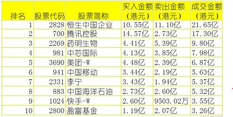 亚汇网3月17日港股通数据统计显示:恒生中国企业成交额居首,达21.65亿港元