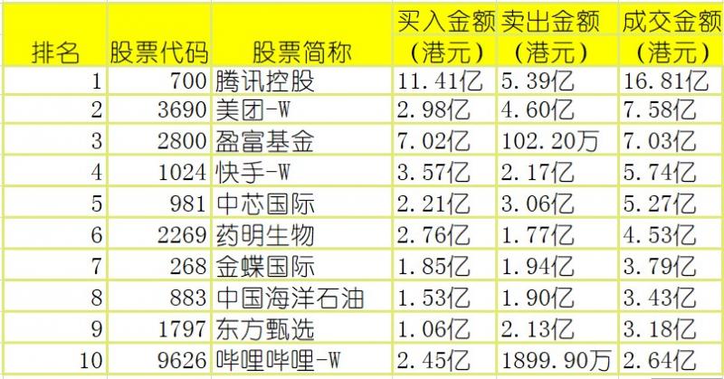 亚汇网3月22日港股通数据统计显示:腾讯控股成交额居首,达16.81亿港元