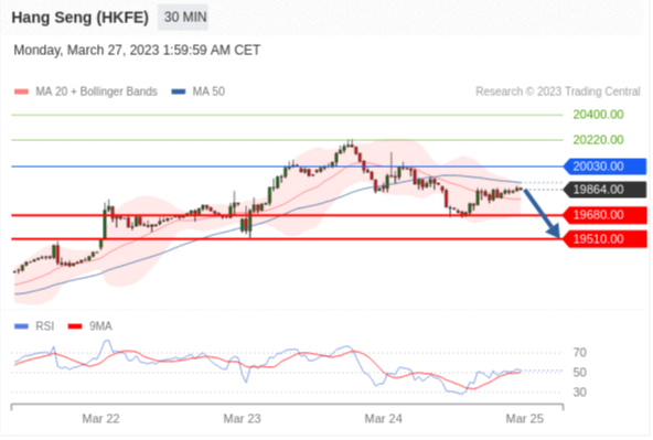 交易策略: 在 20030.00 之下,看跌,目标价位为 19680.00 ,然后为 19510.00 。