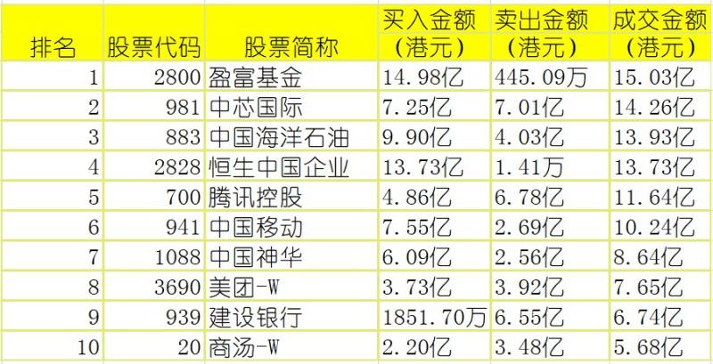 亚汇网实时数据统计:截至4月17收盘,盈富基金、中芯国际、中国海洋石油(沪)成交前三,盈富基金、腾讯控股、中国移动(深)成交前三。