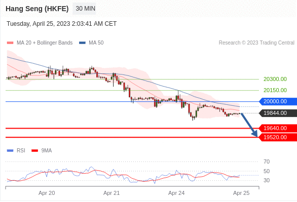 交易策略: 在 20000.00 之下,看跌,目标价位为 19640.00 ,然后为 19520.00 。