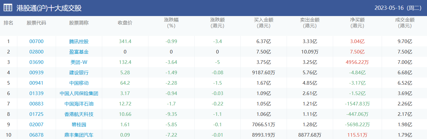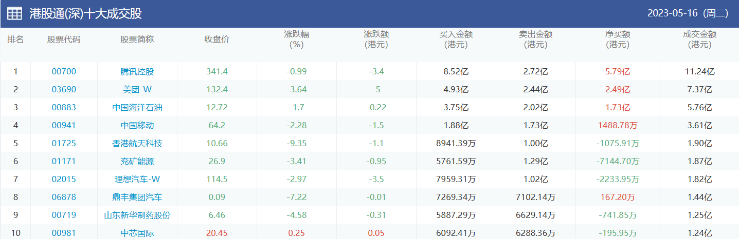 亚汇网实时数据统计:截至5月17日收盘,腾讯控股、美团-W、中国移动位居港股通(沪)成交前三,腾讯控股、中国海洋石油、美团-W位居股通(深)成交前三。
