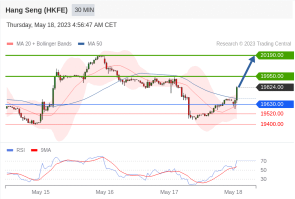 交易策略: 在 19630.00 之上,看涨,目标价位为 19950.00 ,然后为 20190.00 。