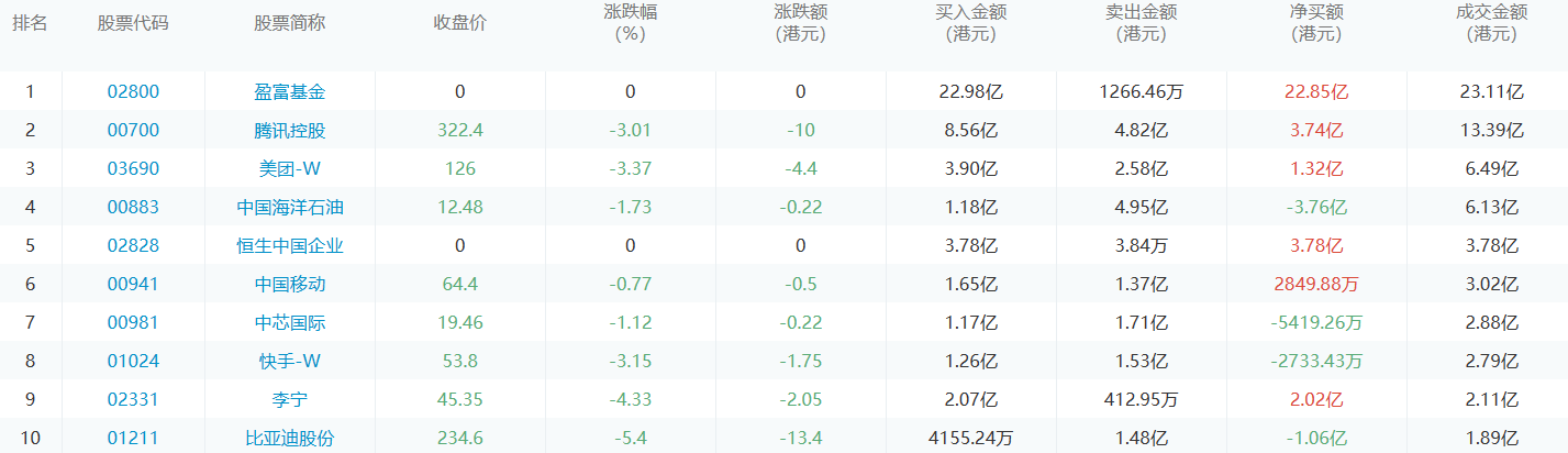 亚汇网5月26日港股通数据统计显示:盈富基金净买入额居首,达22.98亿港元,中国海洋石油净卖出额居第一位。(亚汇网编辑:静香)