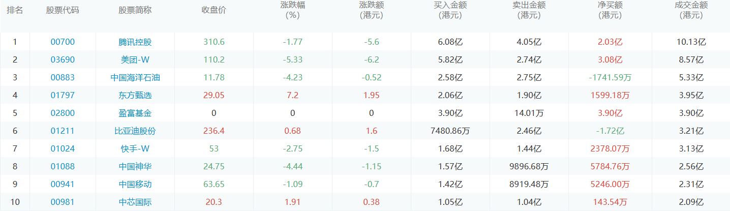 亚汇网5月31日港股通数据统计显示:腾讯控股净买入额居首,达6.08亿港元,腾讯控股净卖出额居第一位。(亚汇网编辑:静香)