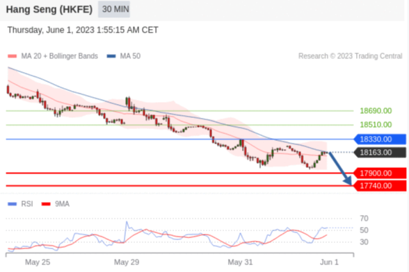 交易策略: 在 18330.00 之下,看跌,目标价位为 17900.00 ,然后为 17740.00 。