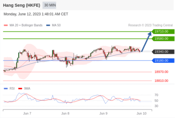 交易策略: 在 19180.00 之上,看涨,目标价位为 19580.00 ,然后为 19710.00 。