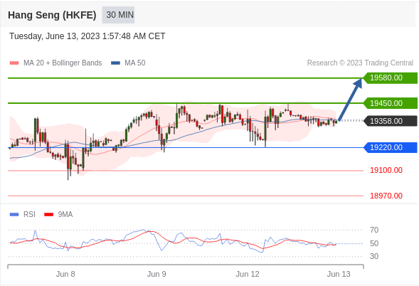 交易策略: 在 19220.00 之上,看涨,目标价位为 19450.00 ,然后为 19580.00 。