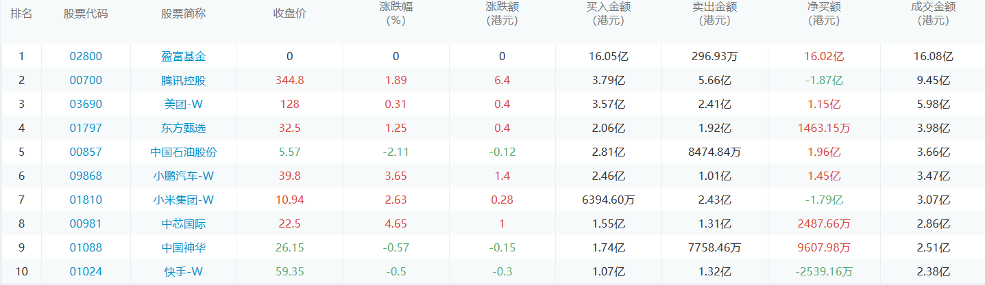亚汇网6月13日港股通数据统计显示:盈富基金净买入额居首,达16.05亿港元,腾讯控股净卖出额居第一位。(亚汇网编辑:静香)