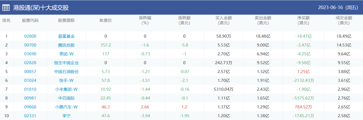 亚汇网实时数据统计:截至6月19日收盘,盈富基金、腾讯控股、美团-w位居港股通(沪)成交前三,盈富基金、腾讯控股、美团-w位居股通(深)成交前三。