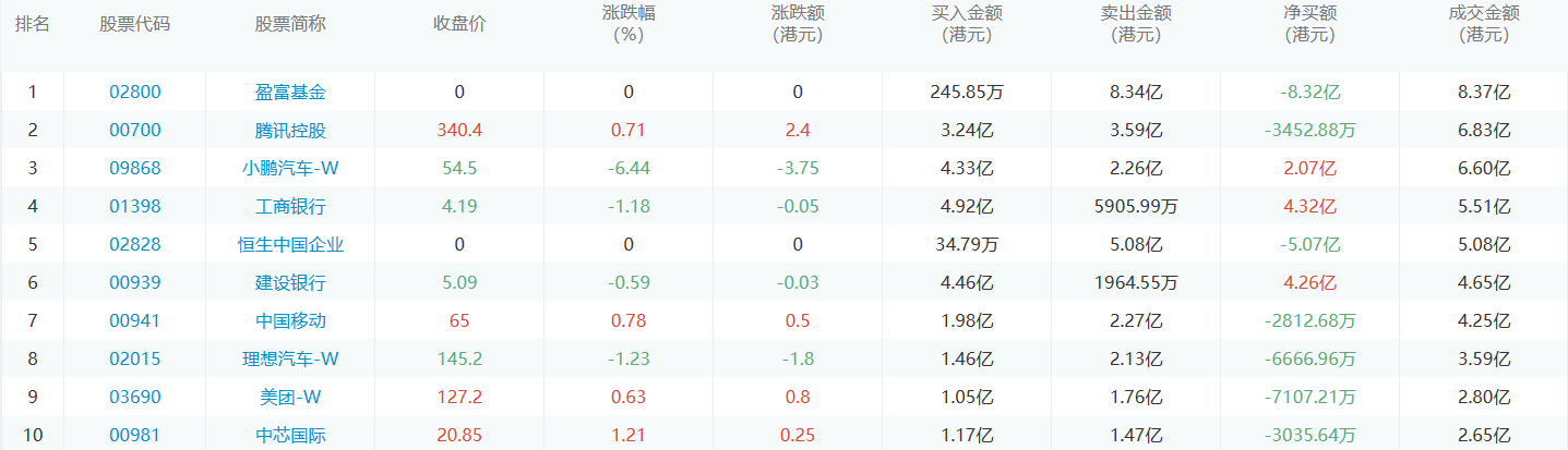 亚汇网7月4日港股通数据统计显示:工商银行净买入额居首,达4.32亿港元,盈富基金净卖出额居第一位。(亚汇网编辑:静香)