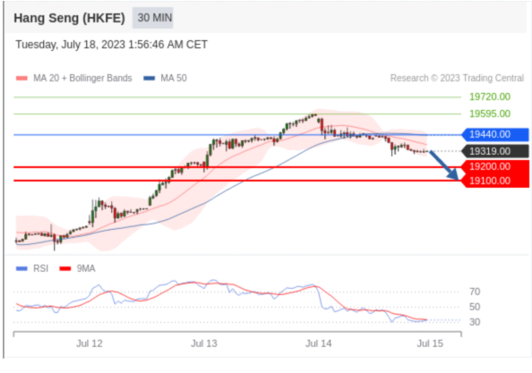 交易策略: 在 19440.00 之下,看跌,目标价位为 19200.00 ,然后为 19100.00 。
