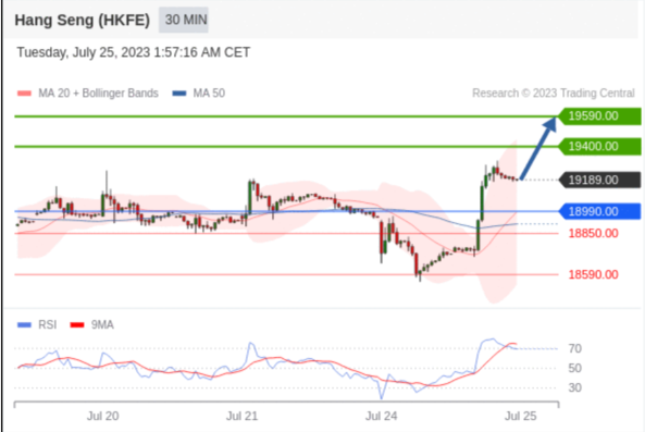 交易策略: 在 18990.00 之上,看涨,目标价位为 19400.00 ,然后为 19590.00 。