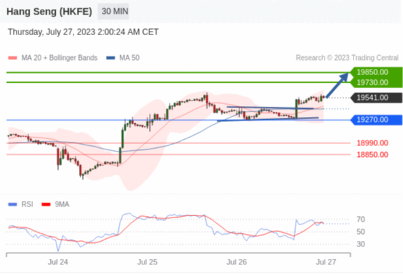 交易策略: 在 19270.00 之上,看涨,目标价位为 19730.00 ,然后为 19850.00 。