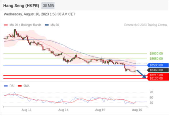 在 18500.00 之下,看跌,目标价位为 18215.00 ,然后为 18130.00 。